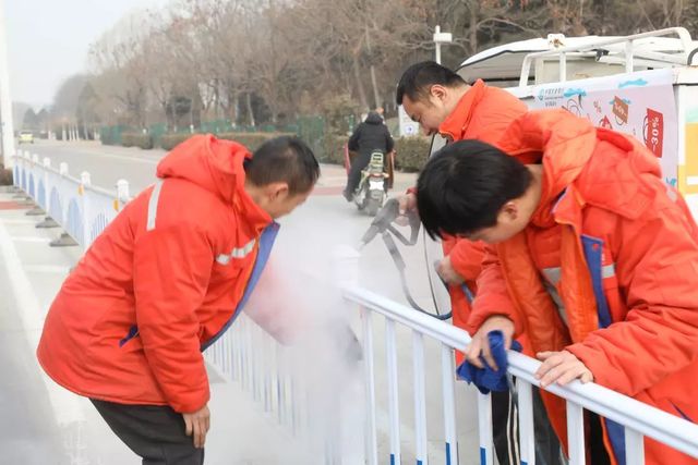 洗車工打開蒸汽噴頭,強勁的蒸汽會噴出來,洗車工手持噴槍,噴出的高壓熱蒸汽有獨特的熱分解功能,能迅速軟化站牌、護欄上的泥沙、鳥糞、蟲尸、蟲膠和污漬,并通過蒸汽快速將其去除。經過一個小時的高溫清洗過后,一排排嶄新的公共設施映入了大家的眼簾,同時公共設施的漆面達到了煥然一新的效果。