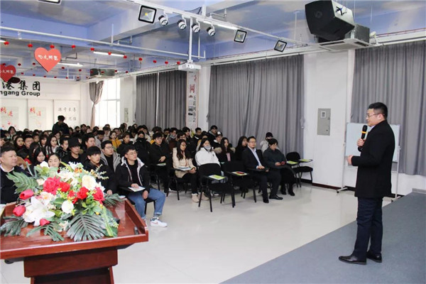 乾港集團(tuán)美博士環(huán)??偨?jīng)理常凱??偅瑸樵谧膸熒鷤兘庾x了大綠色環(huán)保家居、室內(nèi)污染物治理技術(shù)、方式方法及產(chǎn)品介紹等相關(guān)空凈治理知識(shí);秦皇島新型材料科技有限公司總經(jīng)理李勇劍李總則為在座師生帶來(lái)了綠色材料研發(fā)及生產(chǎn)使用工藝等內(nèi)墻環(huán)保壁材方面的知識(shí)。